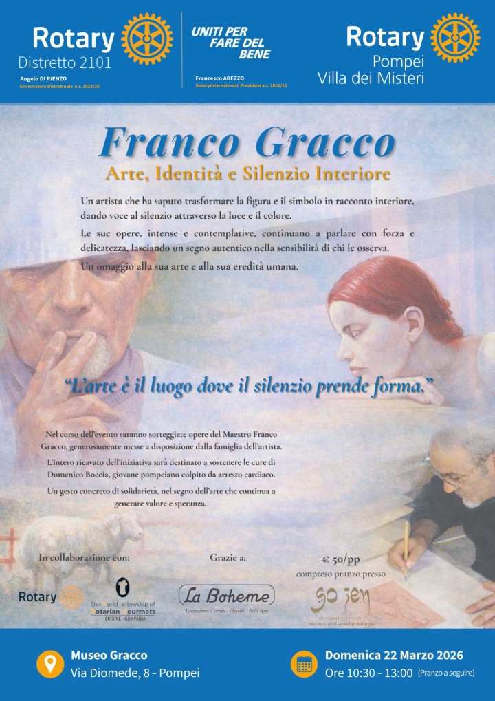 Nel corso dell’evento saranno sorteggiate opere del Maestro Franco Gracco, generosamente messe a disposizione dalla famiglia dell’artista.